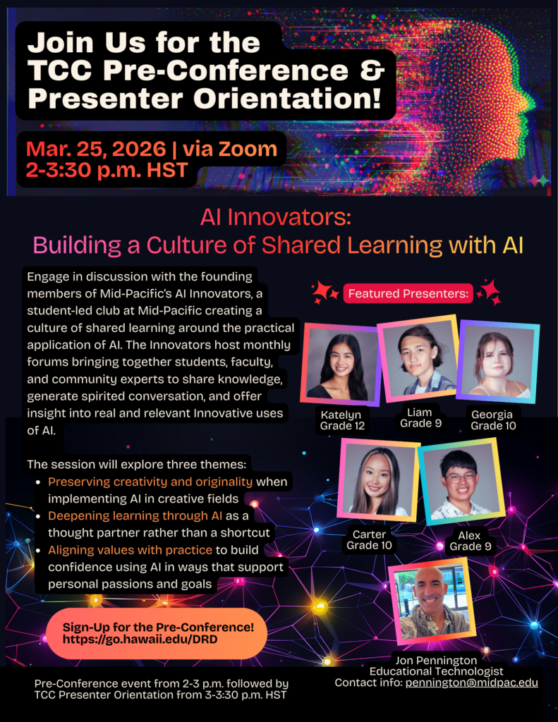ABOUT YOUR PRESENTER: Michael Menchaca is a Professor in the Department of Learning Design and Technology at the University of Hawai'i at Manoa. He specializes in distance education, and has designed, implemented, and coordinated online and hybrid programs for over 25 years. Dr. Menchaca has worked extensively in the Pacific Region and internationally, providing culturally-sustaining technology training, assisting in the development of regional technology plans, delivering keynote presentations, participating in expert panels, and collaborating with academic and community partners. He was recently honored with the Association for Educational Communications Technology’s International Division’s 2025 International Contribution Award. Dr. Menchaca also serves as editor for the International Academic Forum’s (IAFOR) Journal of Education: Technology in Education issue. He was an IT specialist for many years in the public and private sector. He teaches and conducts research in the areas of online learning, technology integration, artificial intelligence, and social justice with technology.